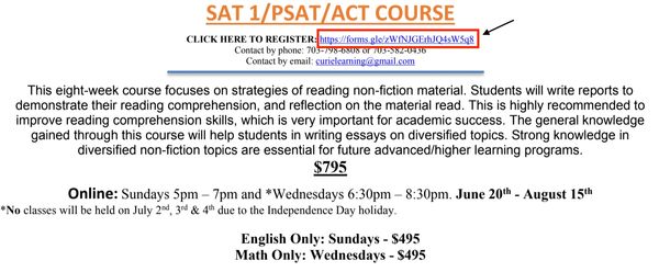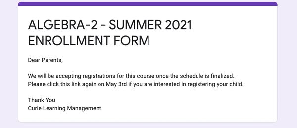 3. Complete the Google form for each course you would like to register for your student.